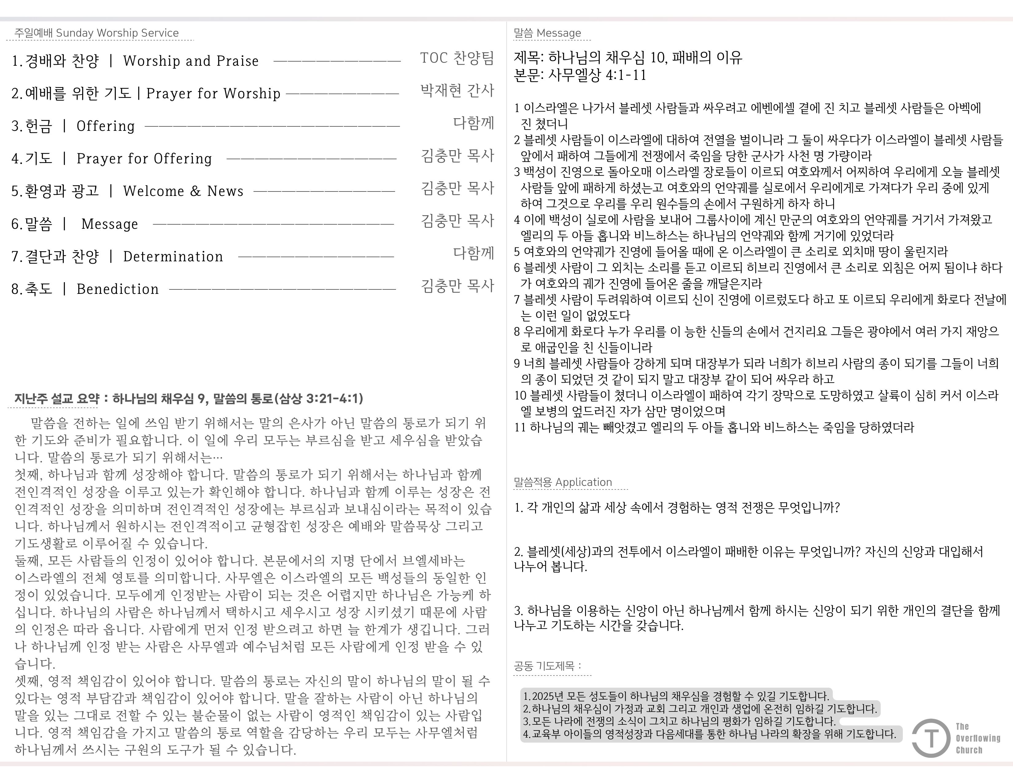 3월 16일 교회주보 페이지 정보 작성자 CrownMinistry 작성일 24-03-29 23:05 목록 본문 3월 16일 교회주보(03-16-2025) 댓글 0 댓글목록 등록된 댓글이 없습니다. 목록 검색 검색대상 제목내용제목+내용글쓴이글쓴이(코) 검색어 필수 검색 닫기 Total 2건 1 페이지 교회소식 목록 번호 제목 날짜 2 3월 23일 교회주보 2025-03-23 열람중 3월 16일 교회주보 2024-03-29