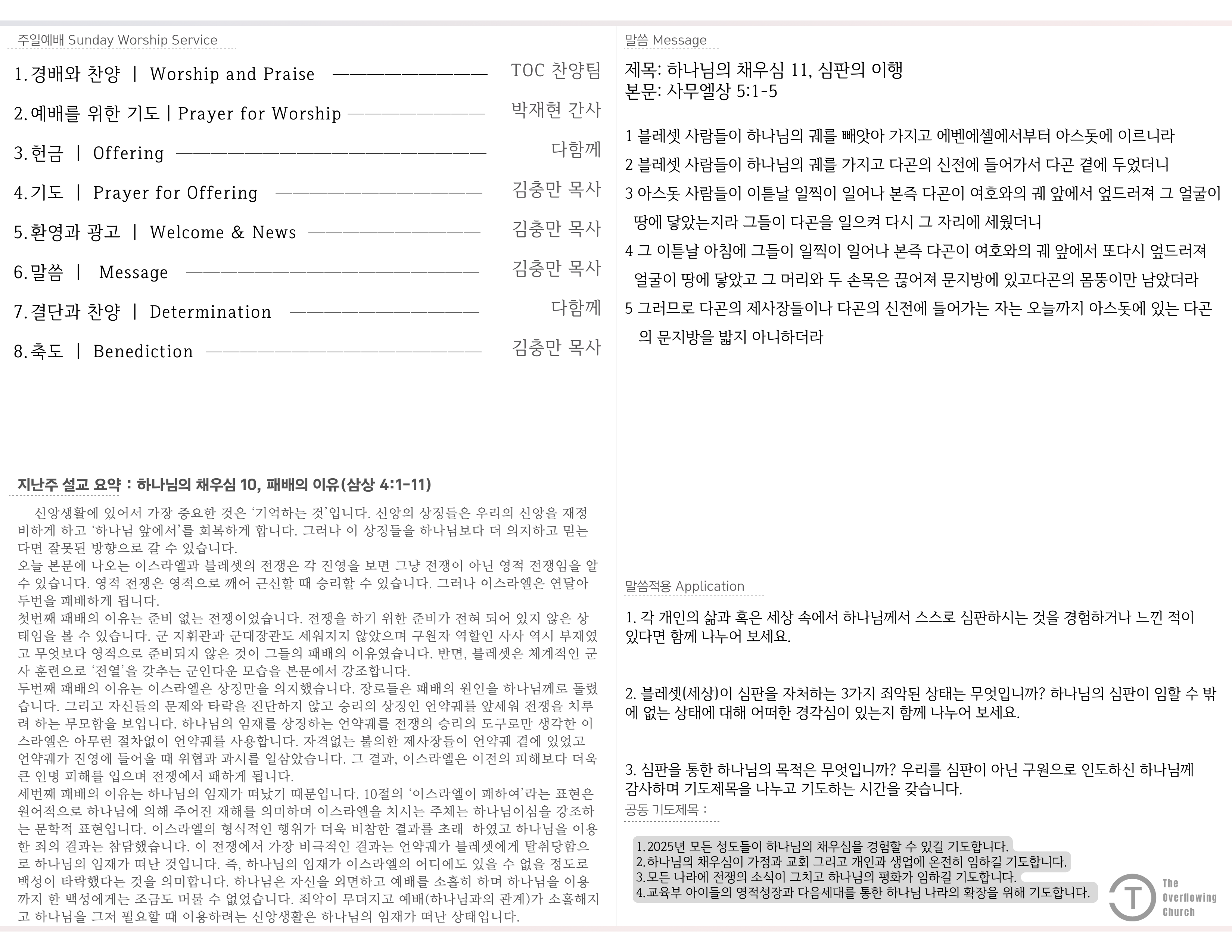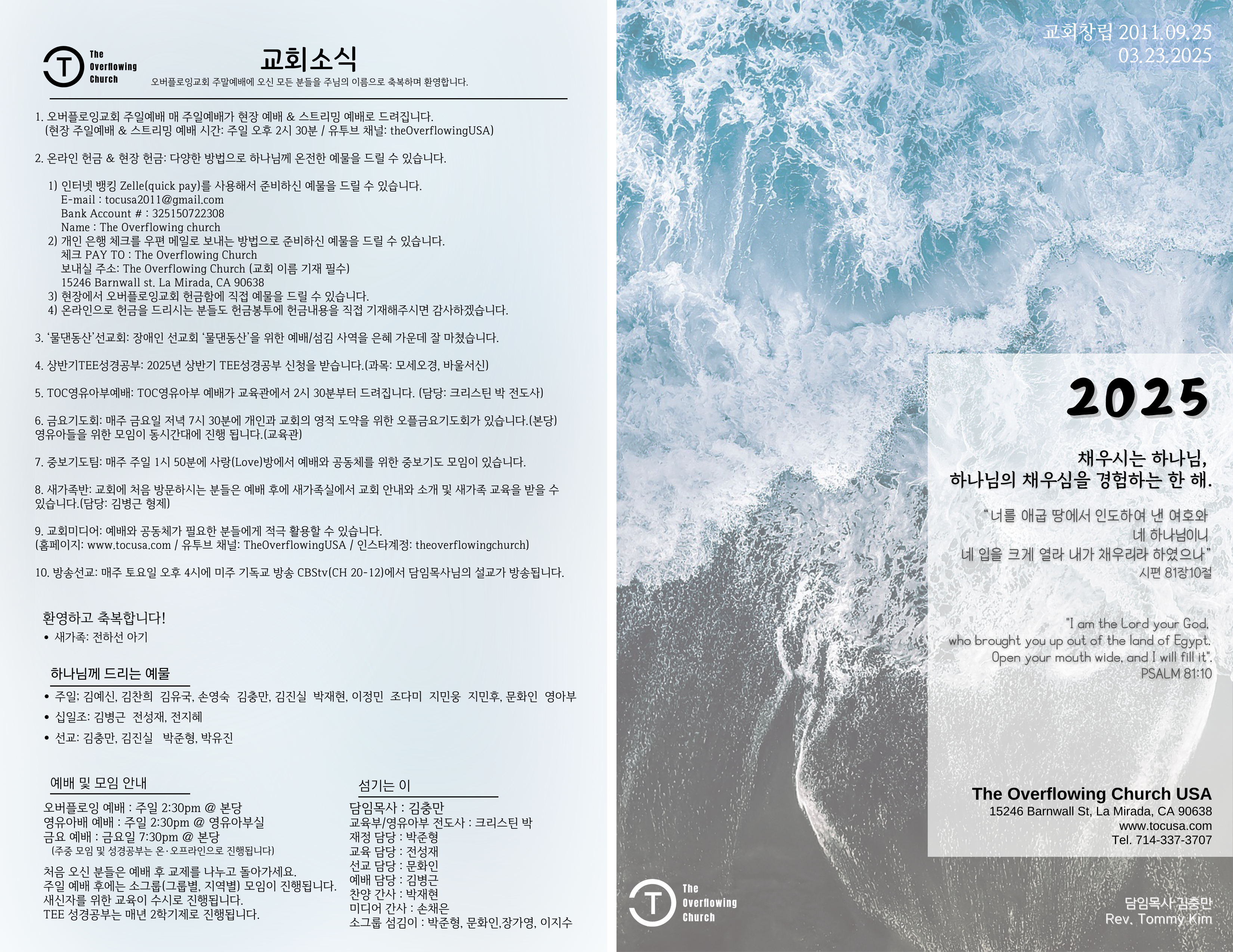 3월 23일 교회주보 페이지 정보 작성자 넘치는교회 작성일 25-03-23 13:40 목록 본문 3월 23일 교회주보 댓글 0 댓글목록 등록된 댓글이 없습니다. 목록 검색 검색대상 제목내용제목+내용글쓴이글쓴이(코) 검색어 필수 검색 닫기 Total 2건 1 페이지 교회소식 목록 번호 제목 날짜 열람중 3월 23일 교회주보 2025-03-23 1 3월 16일 교회주보 2024-03-29